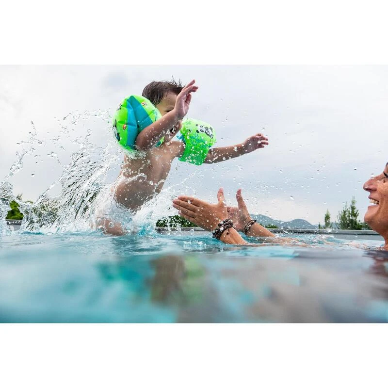 Notre équipe de conception a crée ses brassards de piscine pour l’enfant de 11 à 30 kg en phase de découverte de l’eau et des premiers déplacements aquatiques.